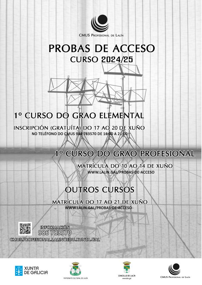 • O horario desta proba é individual e será enviado á dirección de email que se indique no impreso de matrícula das probas de acceso, tamén estará dispoñible o día 24 chamando ao CMUS.