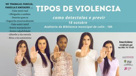 PROGRAMA DE APOIO Á MULLERES LALÍN 2023 "Tipos de violencia, como detectalos e previr" Mércores 18 de outubro, ás 18.00 h. salón de actos da...