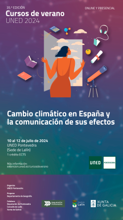CURSO DE VERÁN UNED "CAMBIO CLIMÁTICO EN ESPAÑA Y LA COMUNICACIÓN DE SUS EFECTOS" 10 aO 12 de xullo 2024 UNED Pontevedra (Sede de Lalín) 1 crédito...