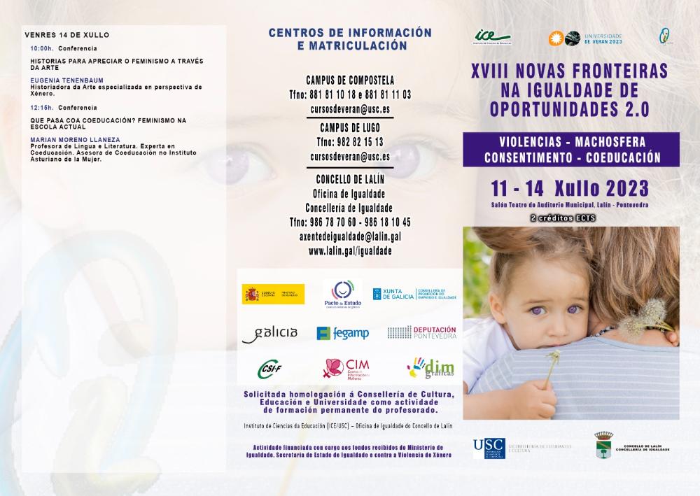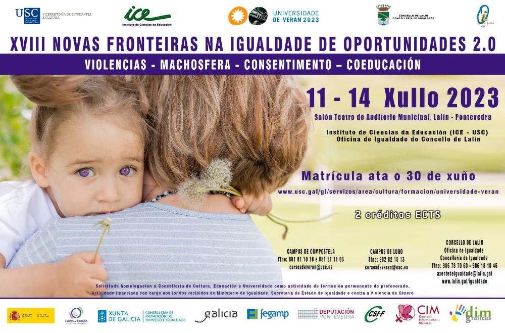ABERTO O PRAZO DE INSCRICIÓN NO CURSO DE VERÁN XVIII NOVAS FRONTEIRAS NA IGUALDADE DE OPORTUNIDADES 2.0: VIOLENCIAS - MACHOSFERA - CONSENTIMENTO – COEDUCACIÓN
