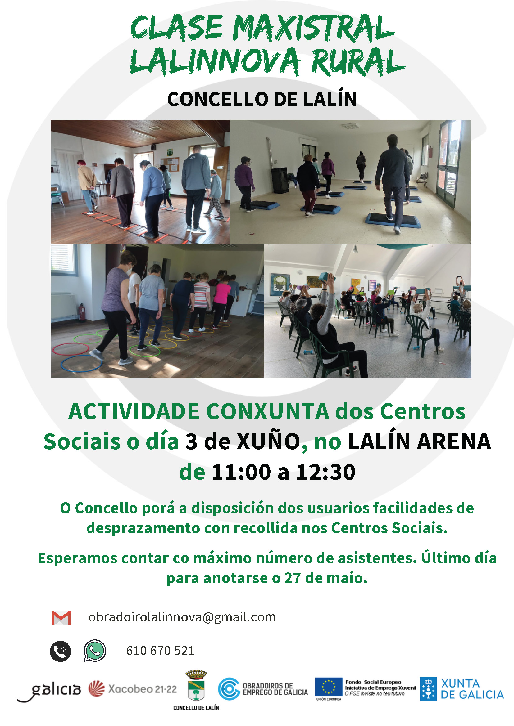 O Concello porá a disposición dos usuarios facilidades de desprazamento con recollida nos Centros Sociais.