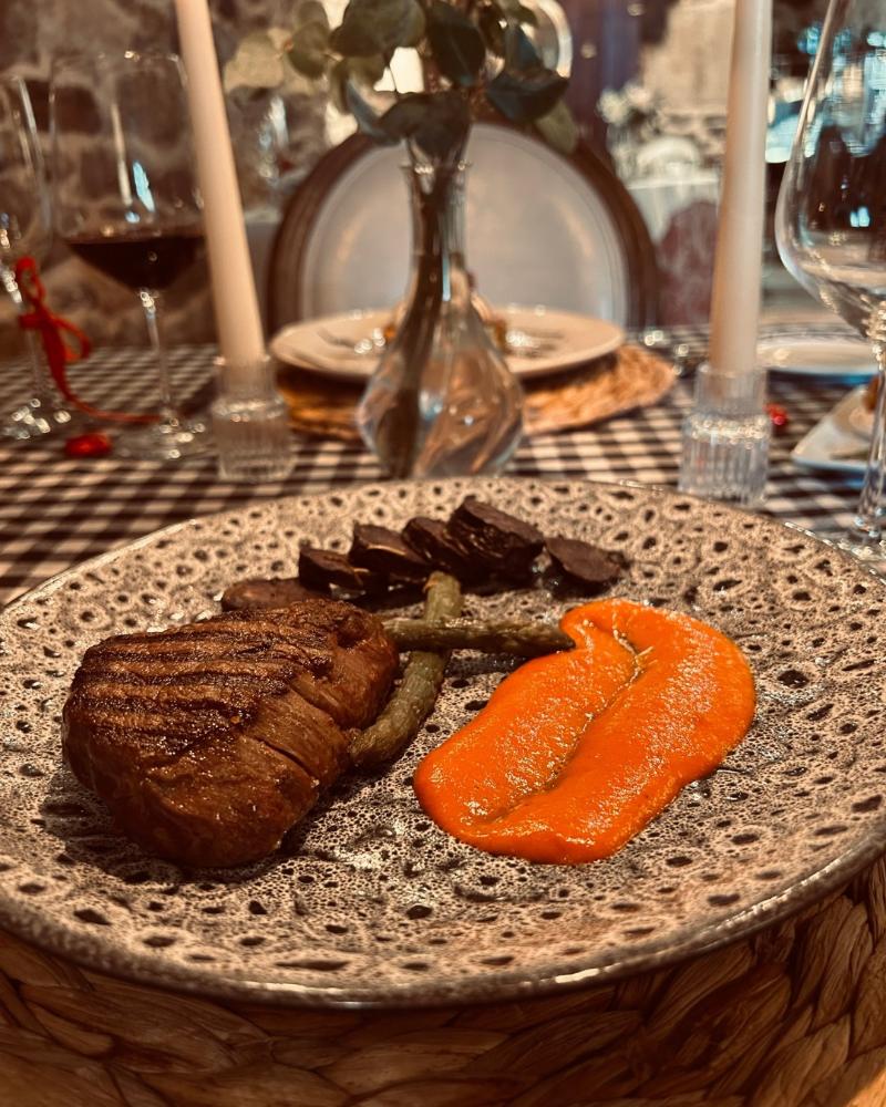 Combinación de creatividade e tradición en cada prato. Ofrecen menús semanais de martes a vernes ó mediodía, excepto festivos, e menús de fin de semana ós sábados, domingos e festivos. Ademáis teñen variedade de entrantes como por exemplo, surtido de croquetas caseiras, langostinos kataiffi, salmón marinado con queixo DOP Cebreiro e maís. Fan menús para eventos especializados e adaptados ós gustos e necesidades dos interesados.
