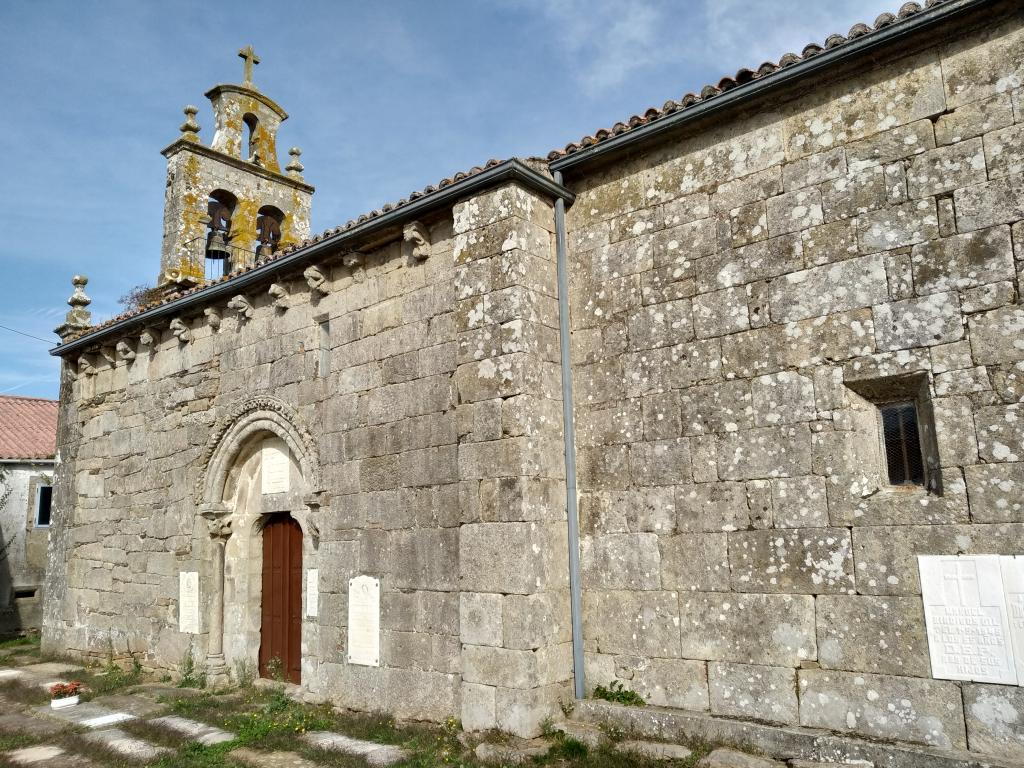 Aínda que moi reformada conserva diversos elementos da súa fábrica románica de finais do século XII. A cornixa que descansa sobre canzorros con figuras variadas, felinos, coellos, mostruos, parella de vellos, un músico tocando a viola... Unha porta lateral cunha arquivolta sobre columnas de fuste liso monolítico e capiteis decorados un con dous leóns e outro con follas.