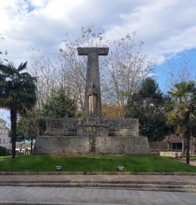 O autor aplicando as novidades que se estaban a dar no poscubismo europeo, bota man dun método definido polo esquematismo e a simplificación, e deste xeito xeometriza os volumes perfilándoos case que coma puras estructuras arquitectónicas, mais sen deixar de lado a forza vital do expresionismo; e con esa admirable claridade concibe este monumento, dispoñendo un primeiro corpo en talude de grandes e regulares bloques graníticos, cunha discreta coroa de metal entre dúas palabras en bronce coma única decoración. Nas ás do "aparello", desprega dous relevos de gran forza expresionista coas figuras alegóricas de España e Filipinas en actitude de voo. Ambas estreitan as súas mans baixo o nome e a figura do aviador en símbolo da alianza acadada en 1926 co prodixioso "raid" Madrid - Manila, realizado por Loriga na compaña de Gallarza e Estévez. Diante da cola do avión fincado verticalmente na terra, está a estatua do aviador co seu casco, e insistindo de novo nas ideas de austeridade e mesura, o escultor troca o uniforme militar polo de mecánico, e acomoda as mans sobre unha hélice, ó tempo que sostén un pergamiño. O rostro e a man esquerda son de bronce. A limpeza de liñas é palpable na acertada silueta do avión afociñado en terra suxerindo a forma dunha cruz. A idea da cruz vese á vez reforzada na colocación da sinxela imaxe do piloto con respecto das dúas figuras voadoras. O monumento amosa un esquema marcadamente simétrico que o carga de hieratismo.