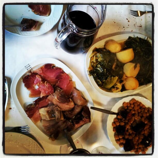 Cocido, ameixas, calamares, carnes á brasa, peixes