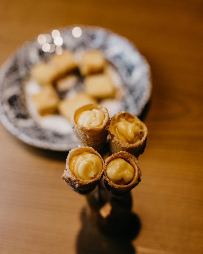 Nos seus entrantes teñen croquetas cremosas de 8 unidades e varios sabores a consultar, pulpo á parrilla, crema de patata e ajada ou bocado de bica de trives, queixo de vaca do país e anchoa.
