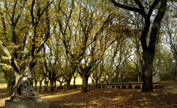 A tan só 700 metros do quilómetro cero atopamos este espazo verde no que carballos e castiñeiros, dúas das especies máis representativas de Galicia, conviven de maneira ordenada.