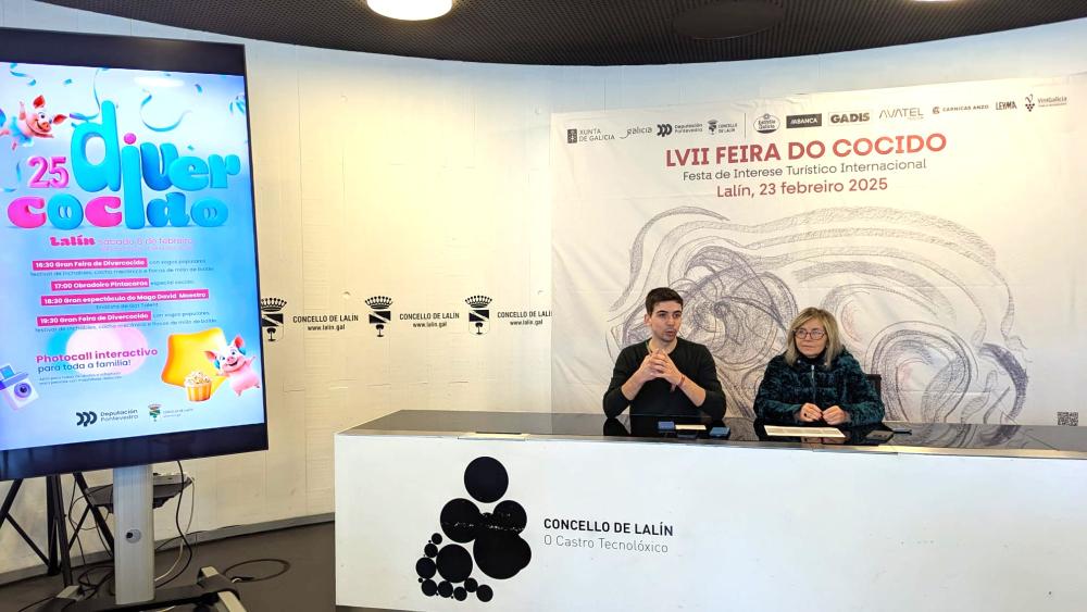 O concelleiro de Turismo, Avelino Souto, e máis a tenente de alcalde, Paz Pérez, presentaron o 25º Divercocido para o vindeiro sábado 8 de febreiro, na Carpa do Cocido. Desde as 16:30 h haberá para toda a cativada xogos populares, inchables, pintacaras, a actuación do mago David Maestro, un photocall interactivo e ata un porco mecánico, finalizando cun fin de festa ás 19:30 h.