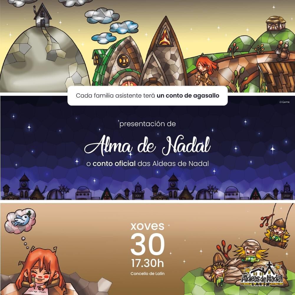 “Alma de Nadal” foi ideado como un xeito de achegar á cativada de toda Galicia o proxecto das Aldeas de Nadal a través dun conto ilustrado a fin de que cando as visiten se sintan plenamente identificados con elas, pois atoparán en Lalín cada un dos elementos descritos nesa historia máxica.