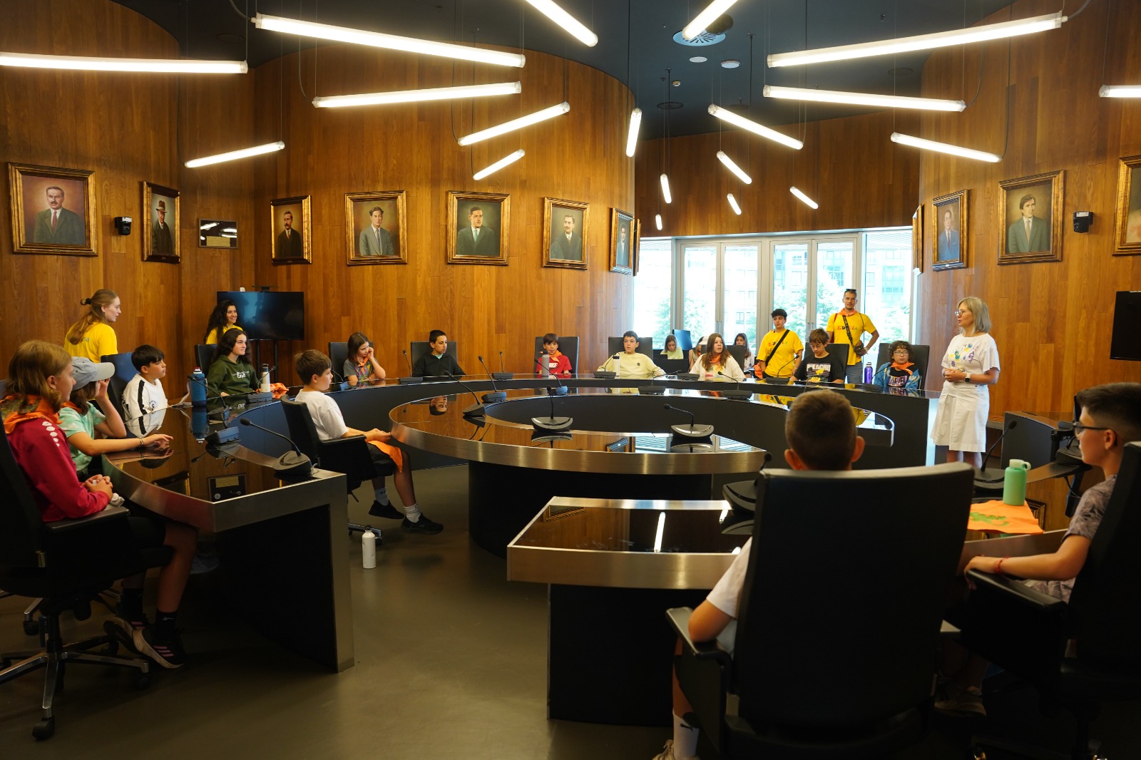 Os 25 nenos e nenas que están a participar no Campamento Aventura+ organizado pola Xunta de Galicia, en colaboración co Concello de Lalín, están visitando a nosa vila. Foron recibidos pola tenente alcalde, Paz Pérez, no Salón de Plenos que lle explicou o funcionamento da Corporación Local e faloulles da importancia da Feira do Cocido. Tamén visitaron distintos espazos lalinenses e forn á piscina.