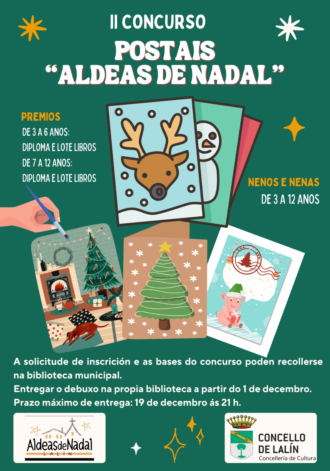 Abre o prazo de presentación de traballos ao II Concurso de Postais <Aldeas de Nadal> que convoca a Concellería de Cultura, desde a Biblioteca Municipal Varela Jácome. Así o indica a concelleira Begoña Blanco que explica que o obxectivo deste certame é “fomentar a creatividade, a sensibilidade artística e a participación activa cultural da cativada lalinense”.