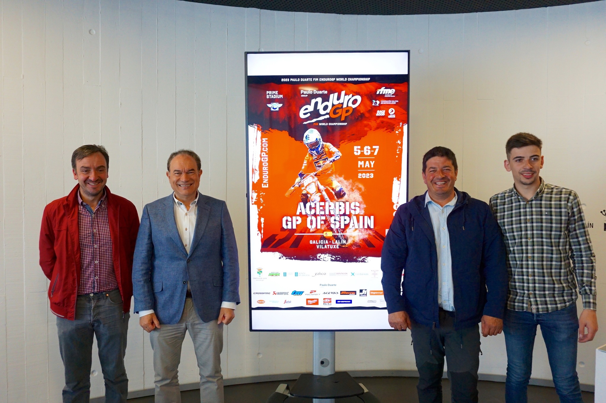 O alcalde José Crespo, o presidente da Federación Galega de Motociclismo - FGMoto José Canda, o presidente do Motoclub Movete Na Moto, Ángel Arca e o concelleiro de Deportes, Avelino Souto presentaron o Acerbis GP SPAIN Lalín, a 2ª proba do circuíto mundial Enduro GP 2023, que se vai a disputar en Lalín os días 5, 6 e 7 de maio.