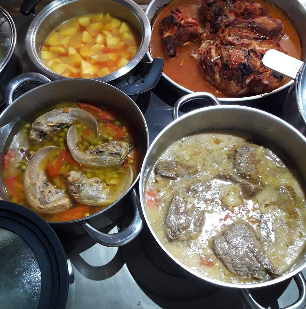 O menú diario inclúe: carne asada, lingua, arroz, macarróns, guiso, polo e bacalao